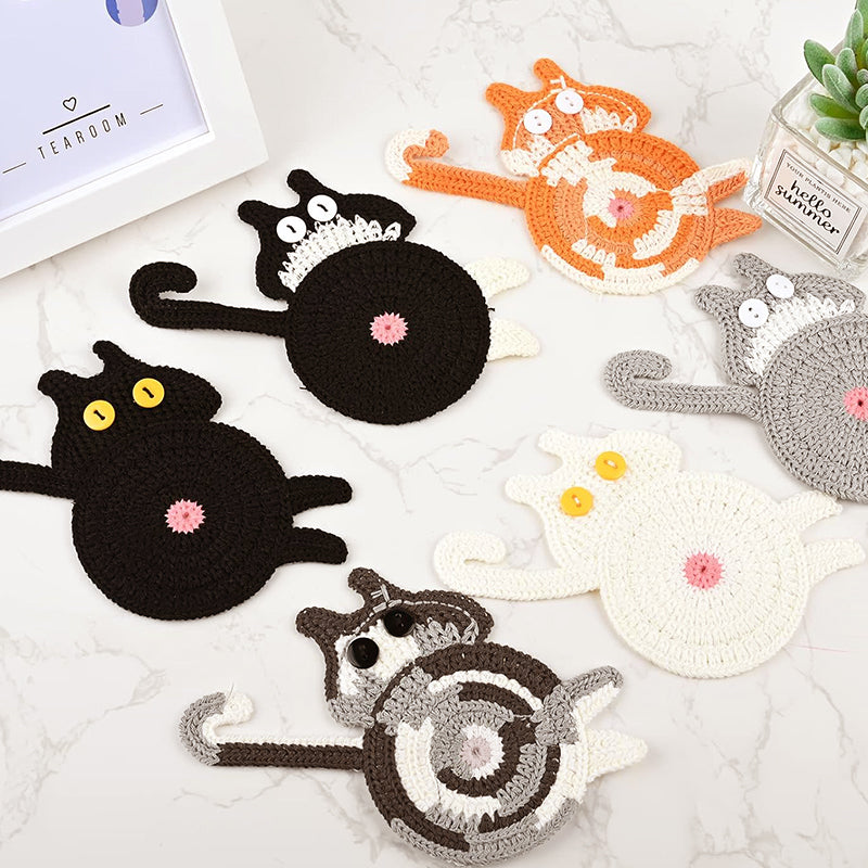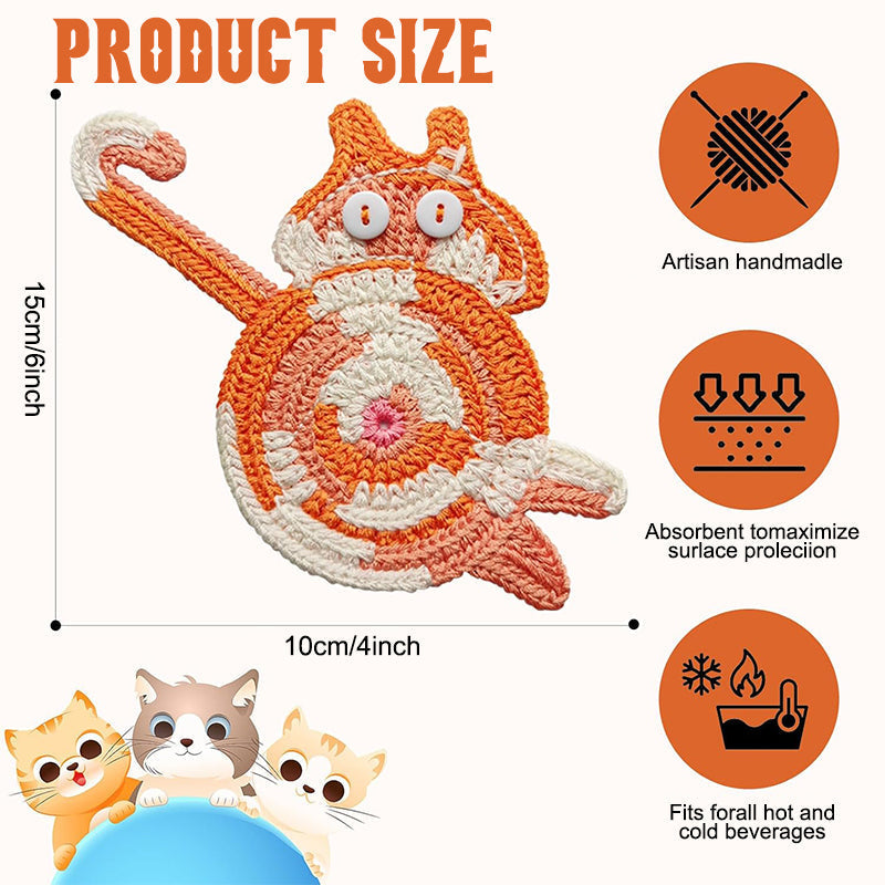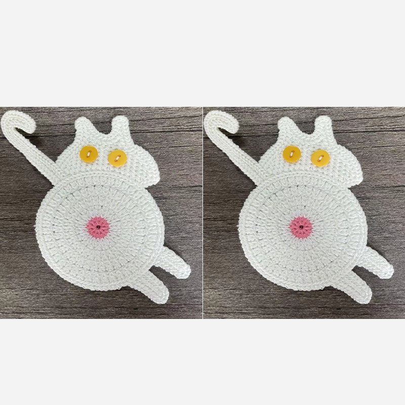 🧶 Handvirkade Underlägg – Kattstjärt (Cat Butt Coaster) – Unikt & Mysigt! 😻