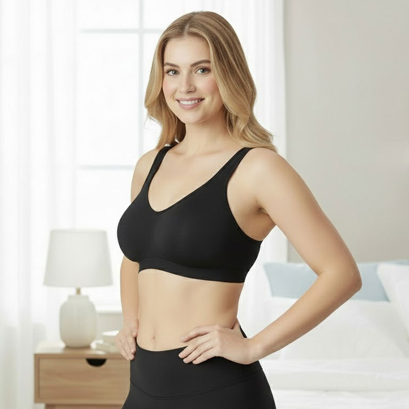 Säg hejdå till klämande byglar! 🙌 Denna BH ger mjukt stöd och flexibilitet, så att du förblir bekväm hela dagen. Idealisk för hemmamys, arbete eller avkoppling. 🏡💖